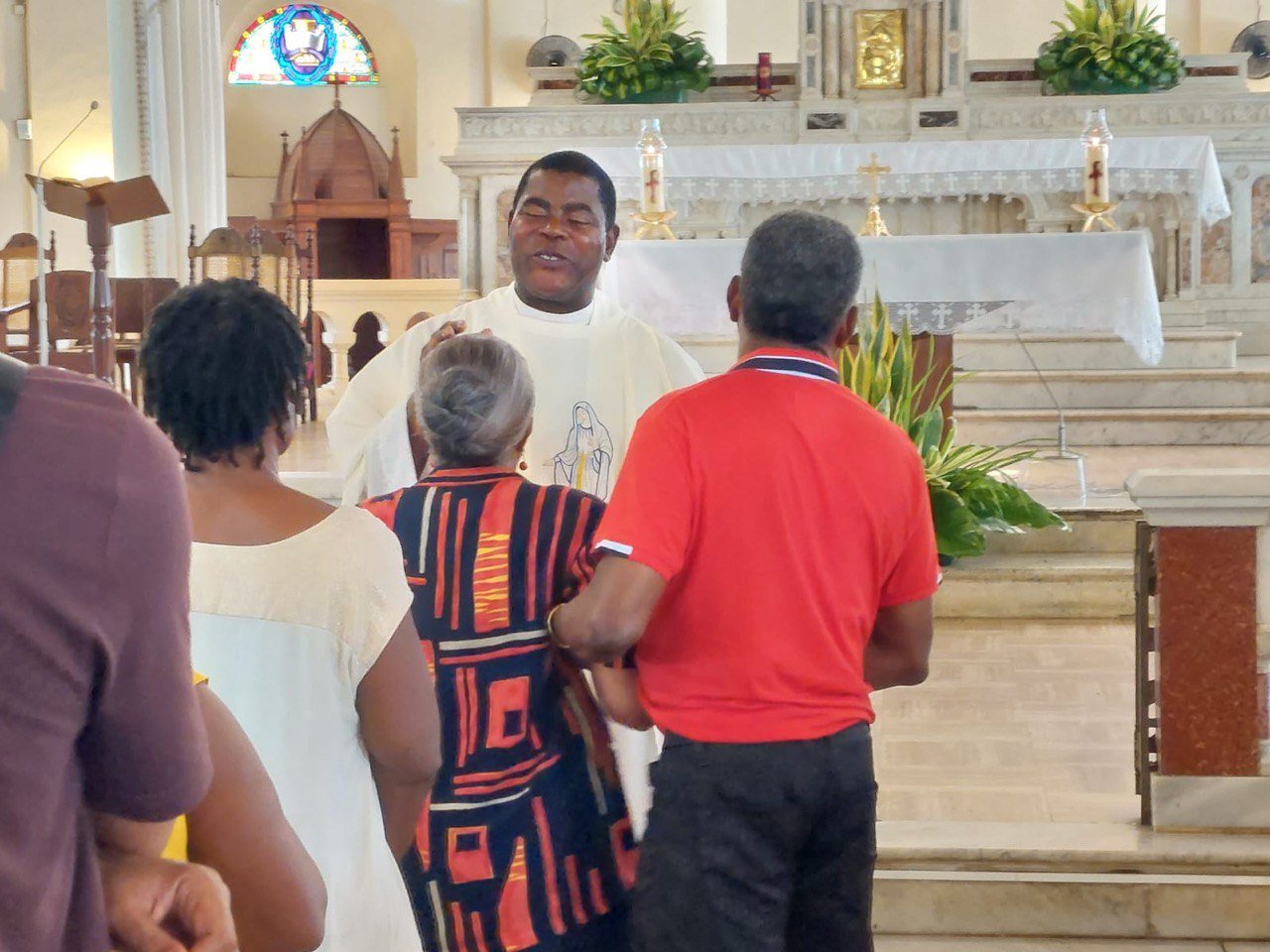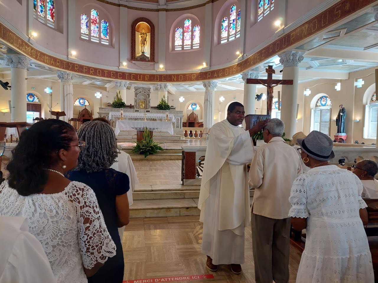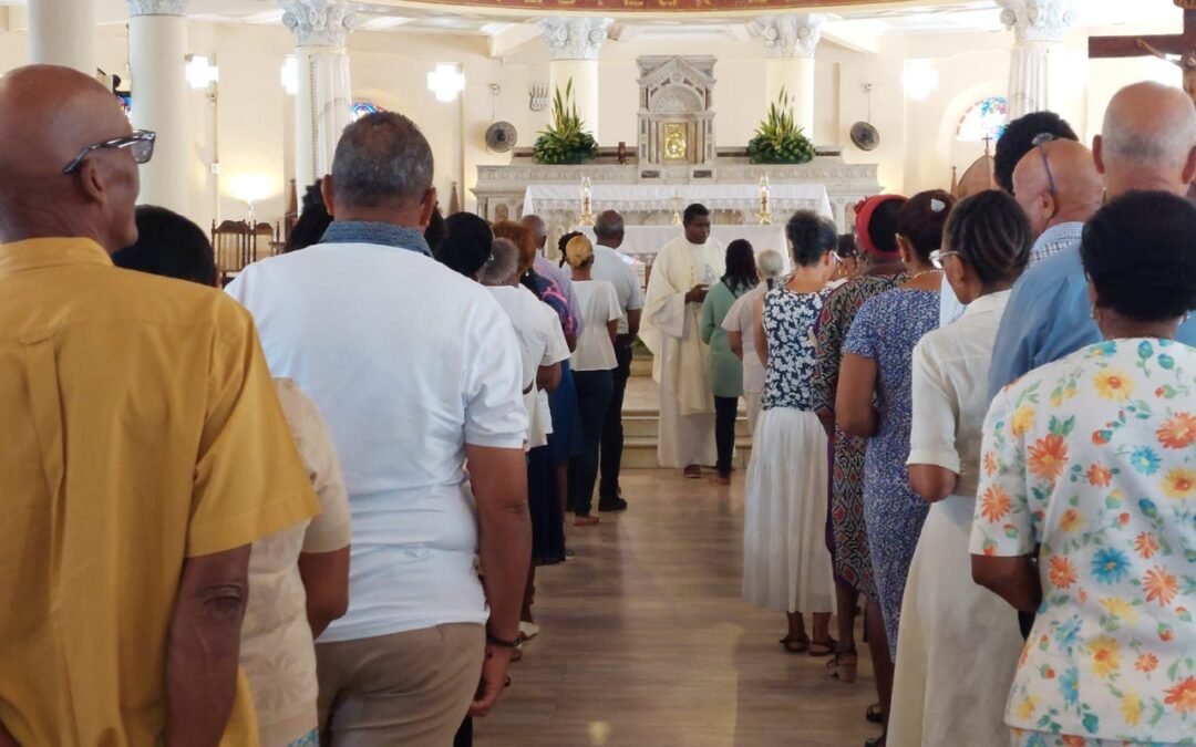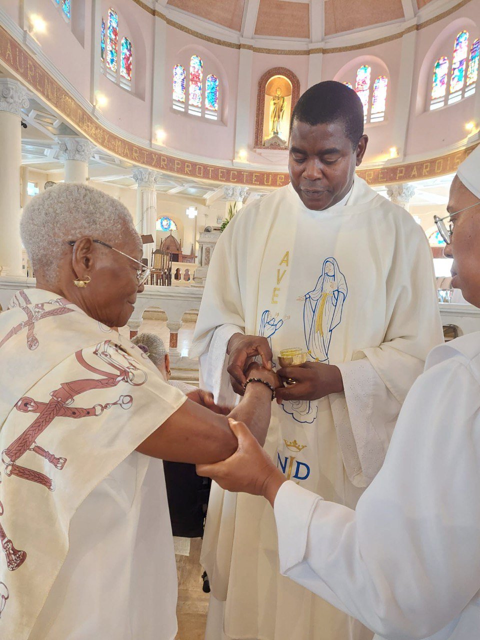 Les malades en état de marcher se sont ensuite avancés en procession devant le célébrant qui a tracé le signe de la croix avec l’huile sainte sur le front et dans les mains de chacun. Ceux qui ne pouvaient se déplacer ont reçu l’onction d’huile sainte dans leur banc.
