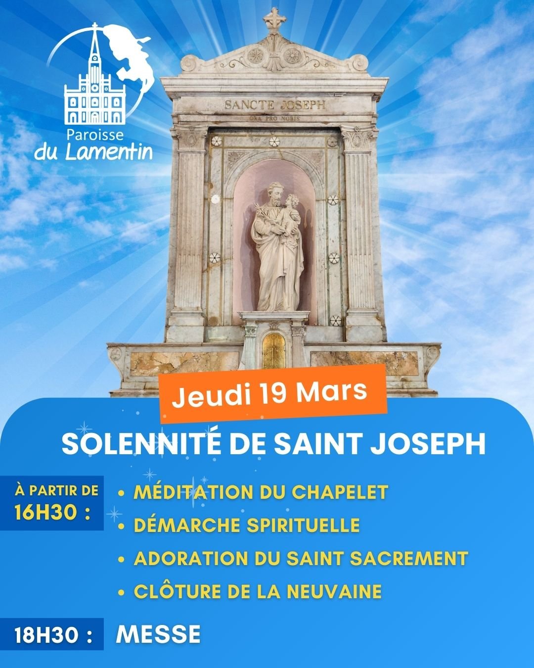 En préparation de cette fête, pendant neuf jours du mercredi 11 mars au jeudi 19 mars, dans le cadre de la neuvaine de prière proposée par le groupe Dévotion et Spiritualité à Saint-Joseph, nous nous sommes tournés vers Saint-Joseph pour méditer sur ses vertus et grandir dans celles-ci d’une part, et pour demander sa puissante intercession d’autre part.