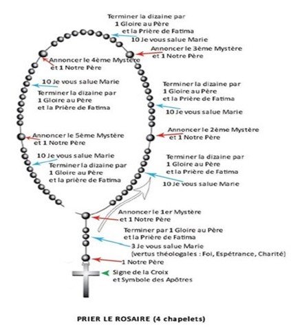 - Puis viennent un Notre Père, trois Je vous salue Marie et un Gloire au Père.